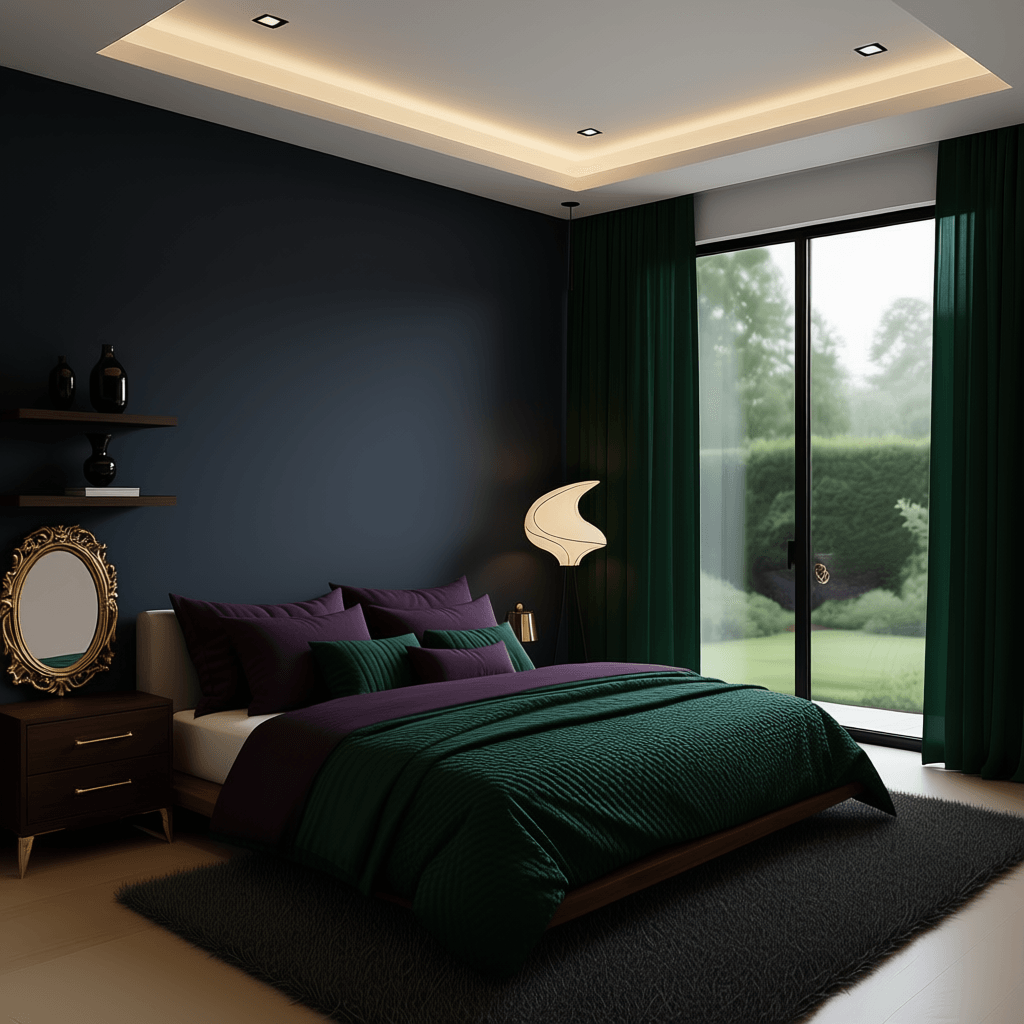 If you want a bold change, try a dark and moody bedroom style. Deep navy, charcoal gray, and forest green walls create an intimate and dramatic feel. Pair these dark tones with warm lighting, gold accents, or wooden furniture to prevent the room from feeling too heavy. This style works especially well in bedrooms where you want a cocoon-like vibe. It’s perfect for people who love a cozy, sophisticated, and slightly mysterious atmosphere. A moody design feels luxurious and instantly makes your space more memorable.