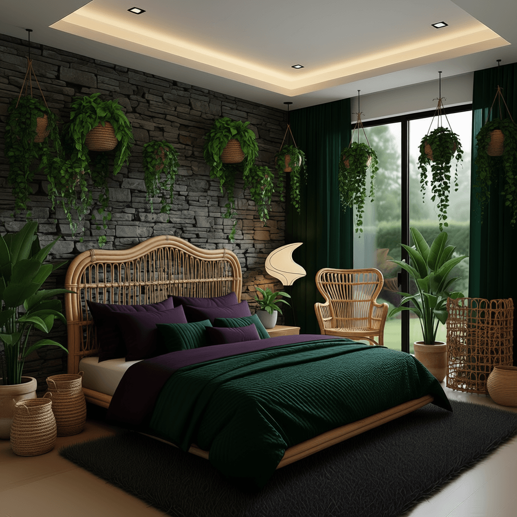 Bringing nature into your bedroom instantly makes it feel more grounded and calming. Wooden bed frames, rattan chairs, stone accents, and woven baskets add organic warmth to the space. You can also add greenery with potted plants or hanging vines for a fresh, lively look. Natural elements pair beautifully with both neutral and bold color schemes. This approach creates a balanced bedroom that feels refreshing and closer to nature. Plus, plants improve air quality, which makes your space healthier and more vibrant.