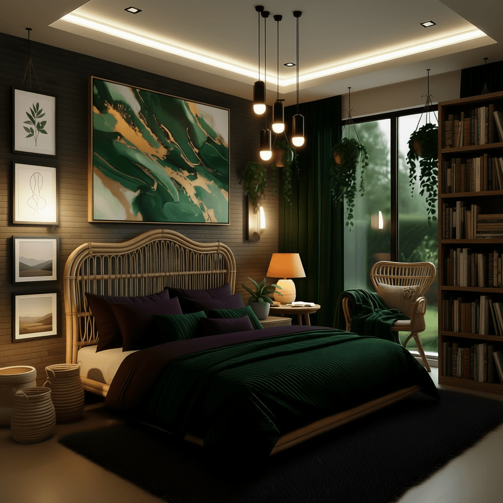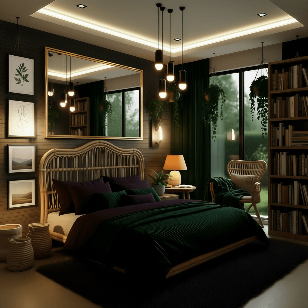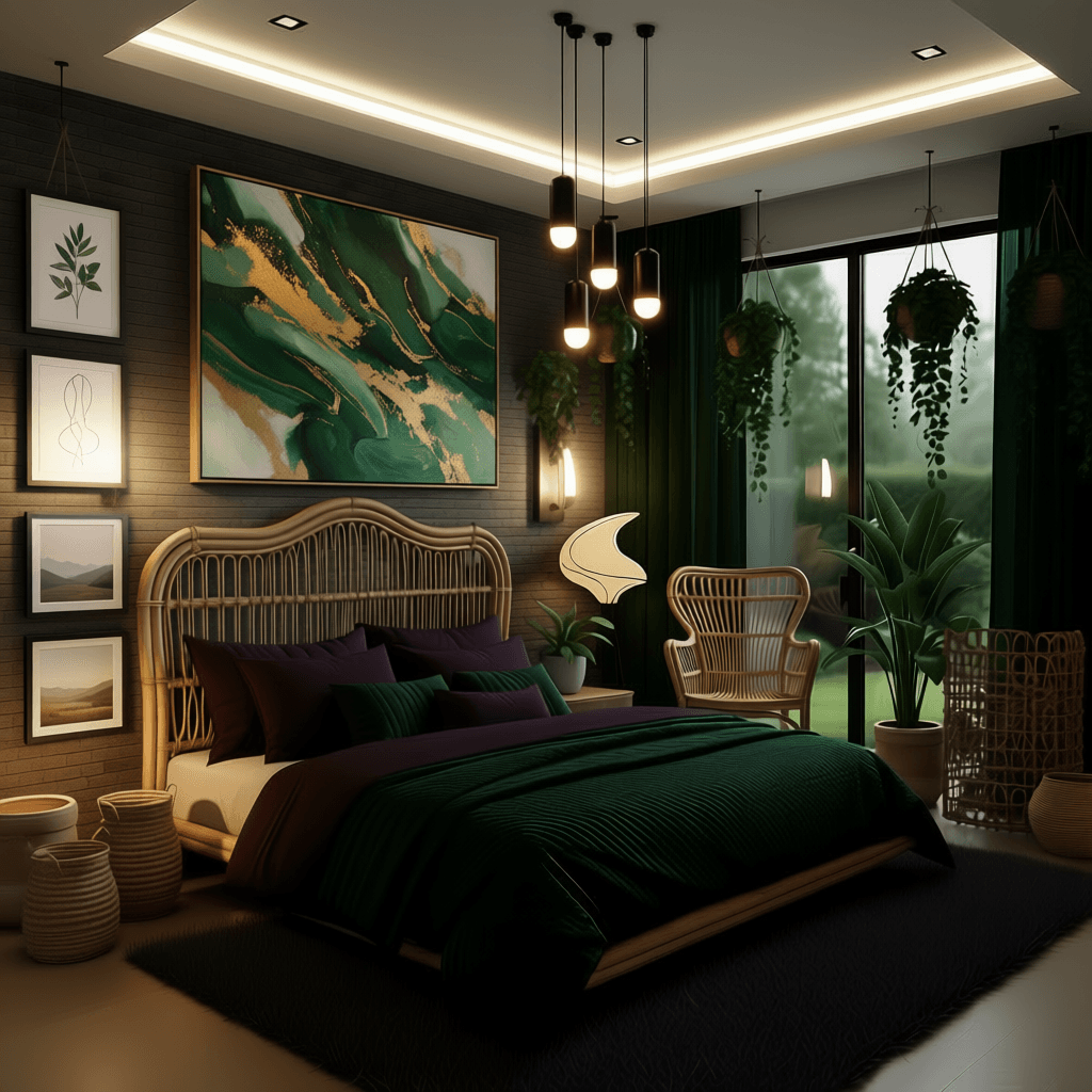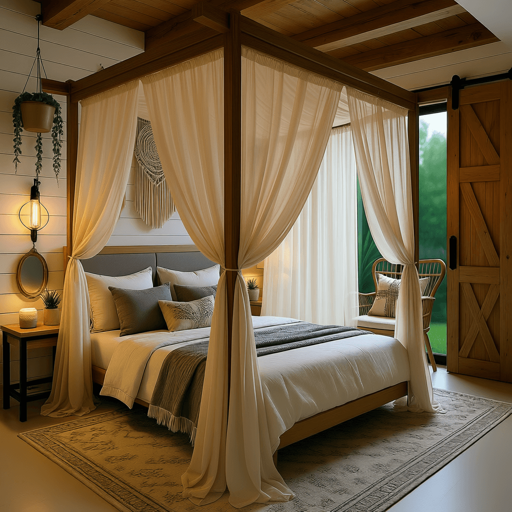 A bohemian bedroom is all about creativity and free-spirited design. Layer rugs, mix patterns, and add woven textures like macramé wall hangings or rattan furniture. Don’t be afraid to play with vibrant colors and eclectic accessories. Plants are also a big part of boho décor, adding a natural and lively feel. This style is perfect if you want your bedroom to feel artistic, laid-back, and full of personality. The bohemian vibe brings warmth and makes your space feel welcoming and adventurous.