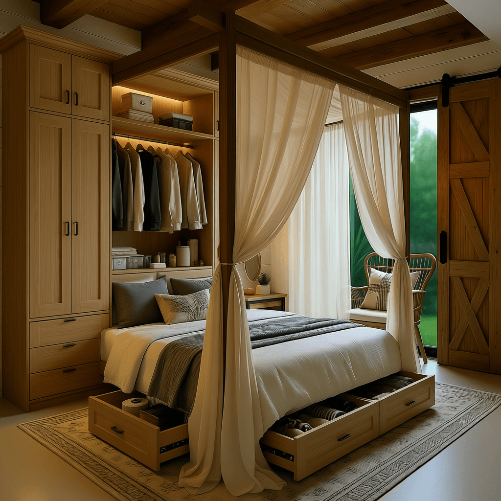 Smart storage keeps your bedroom organized and clutter-free. Built-in wardrobes, under-bed drawers, and floating shelves maximize space without taking up too much room. Custom storage solutions help you make the most of every corner, especially in small bedrooms. A neat and organized room automatically feels calmer and more inviting. Storage also allows you to keep personal items close without creating visual clutter. An organized bedroom sets the stage for better relaxation and better sleep.