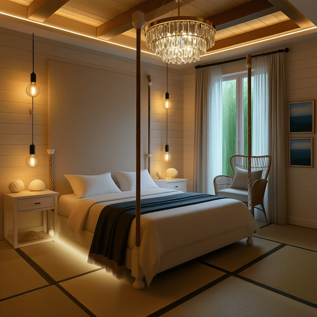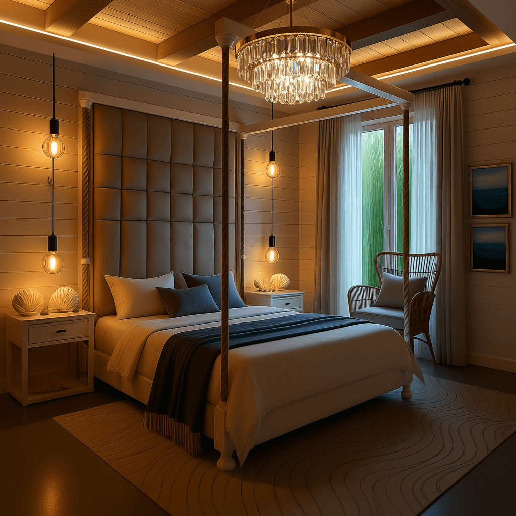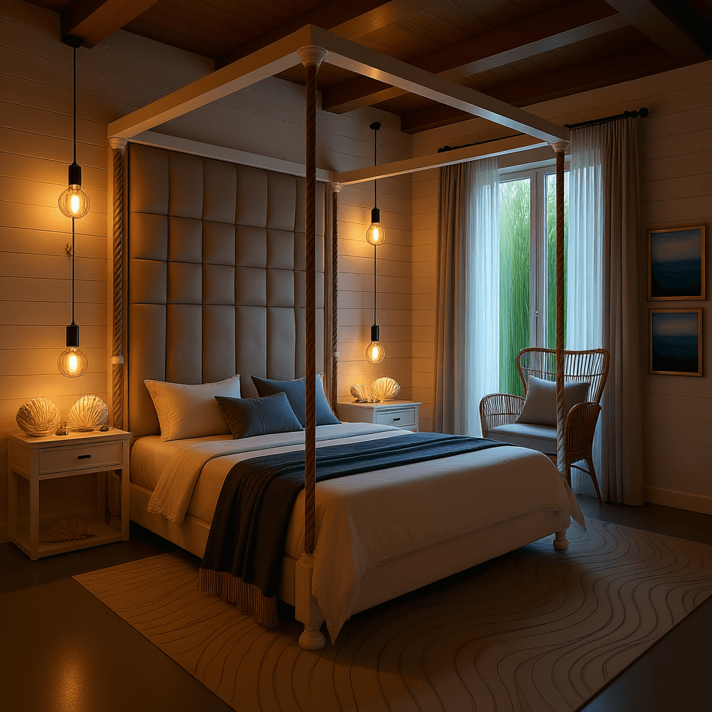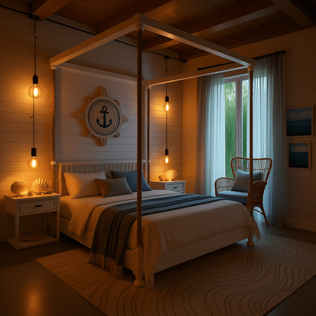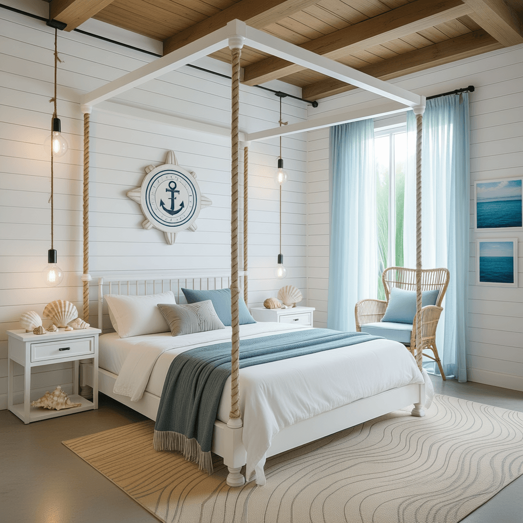 Bring the beach to your home with a coastal-inspired bedroom. White furniture, light blue accents, and natural rope or driftwood details create a breezy vibe. Use light, airy curtains to let natural light flood the room. Seashell décor, nautical prints, or even ocean photography add to the seaside feel. Coastal bedrooms feel bright, refreshing, and relaxing—like a permanent vacation. This theme is ideal for anyone who loves calm, airy spaces.