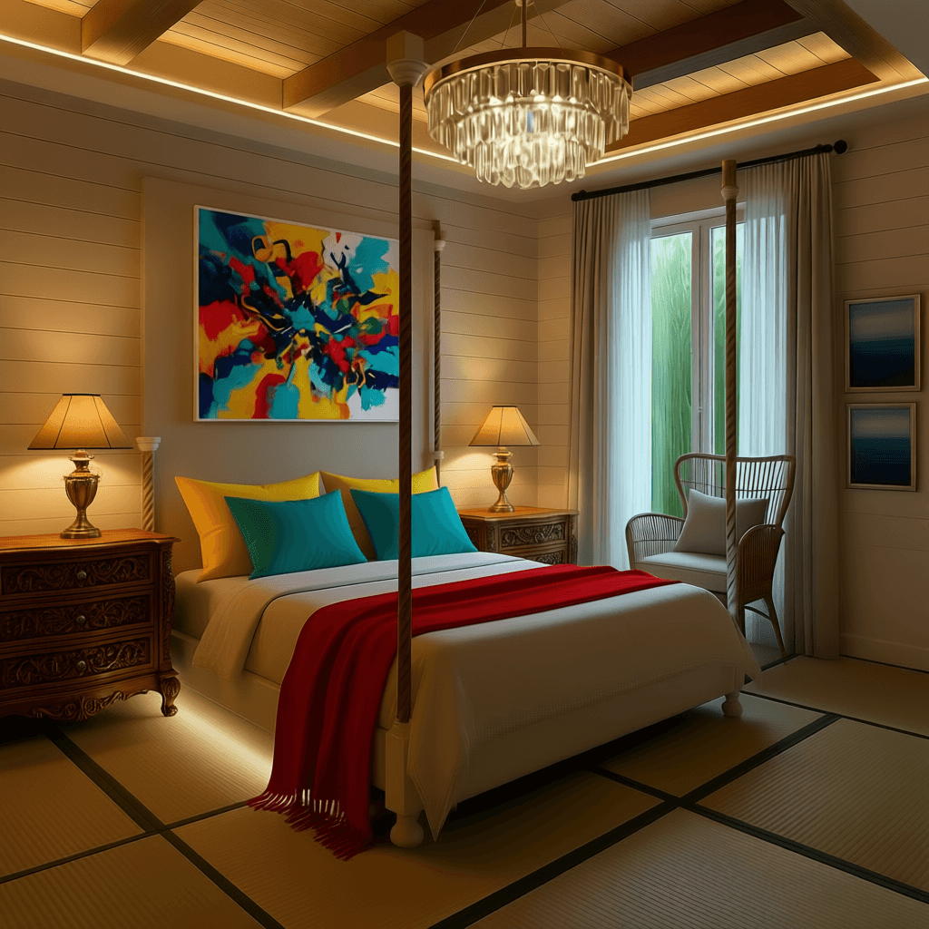 Zen bedrooms are inspired by Japanese design principles of simplicity and balance. Low platform beds, tatami mats, and bamboo accents create a calming, minimalist atmosphere. Stick to neutral colors like beige, cream, and light wood tones. The focus should be on natural light, clean lines, and clutter-free spaces. A Zen bedroom promotes peace, mindfulness, and better sleep. It’s the perfect choice for creating a restful sanctuary.
